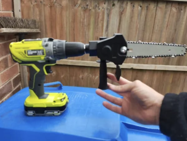 Цепную пилу вы сможете очень легко установить на дрель и удобно использовать в быту