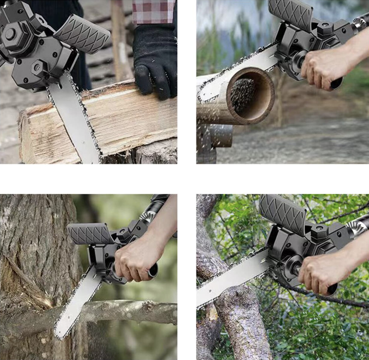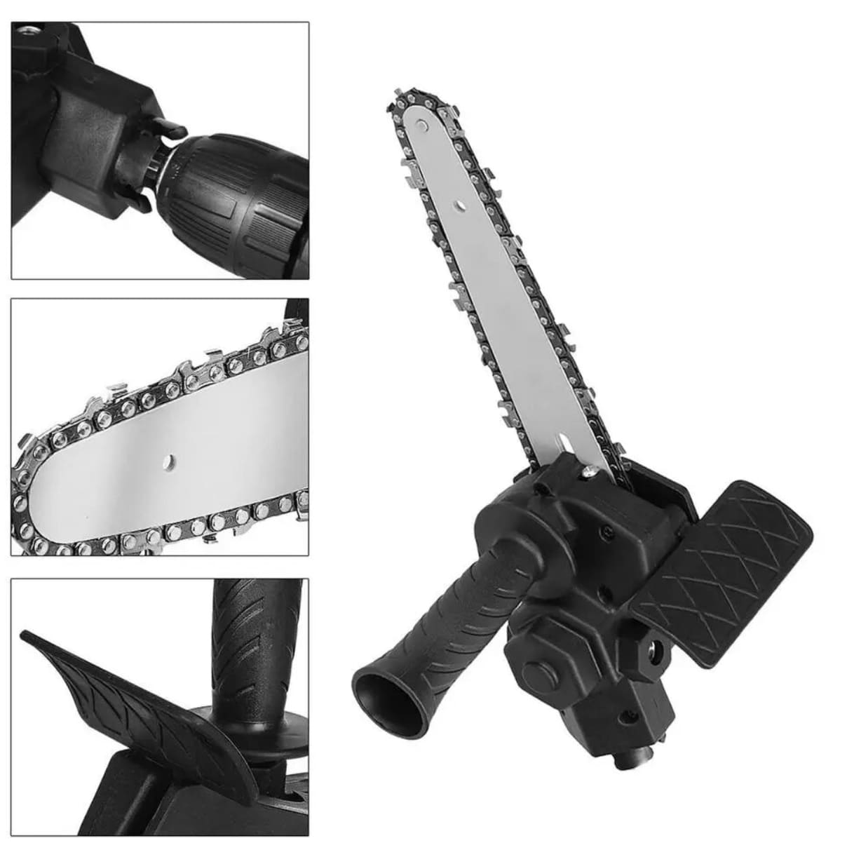 В комплекте идет инструмент, позволяющий удобно и легко переработать электрическую дрель на электрическую бензопилу вместо того, чтобы покупать новую электрическую бензопилу.