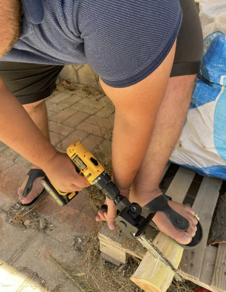 Цепную пилу вы сможете очень легко установить на дрель и удобно использовать в быту